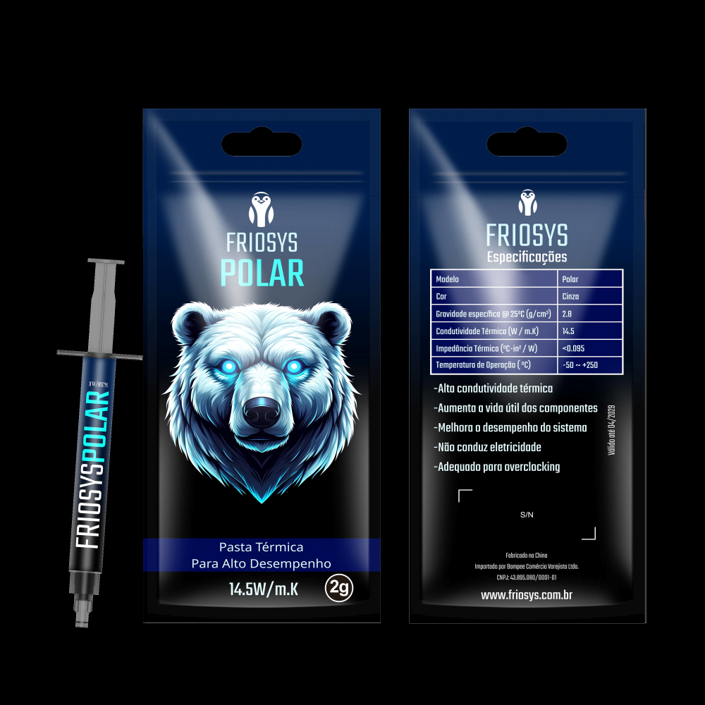 Compatibilidade Universal: A Pasta Térmica Friosys Polar é compatível com todos os tipos de sistemas de refrigeração, incluindo ar e líquido, e pode ser usada em uma ampla gama de componentes eletrônicos, como CPUs, GPUs e chipsets.